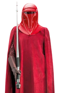 The Emperor's Imperial Guard, besides known as the Reddish Guard, Imperial Royal Guard, the Purple Guard, or only the Royal Guard, and nether the Galactic Republic equally the Red Baby-sit, was an elite unit whose members served equally personal bodyguards to the Galactic Emperor. In add-on to strict requirements of size, forcefulness, intelligence, and loyalty, only the about skilled soldiers in the Royal Military qualified for duty in the Purple Guard. The Imperial Purple Guard were also occasionally assigned to provide protection to members of the Imperial Ruling Quango and the Emperor'south right-hand, Darth Vader.